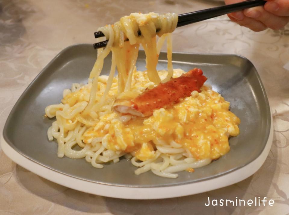 鮮拆蟹黃緊緊包裹著烏冬 有如黃金般發光