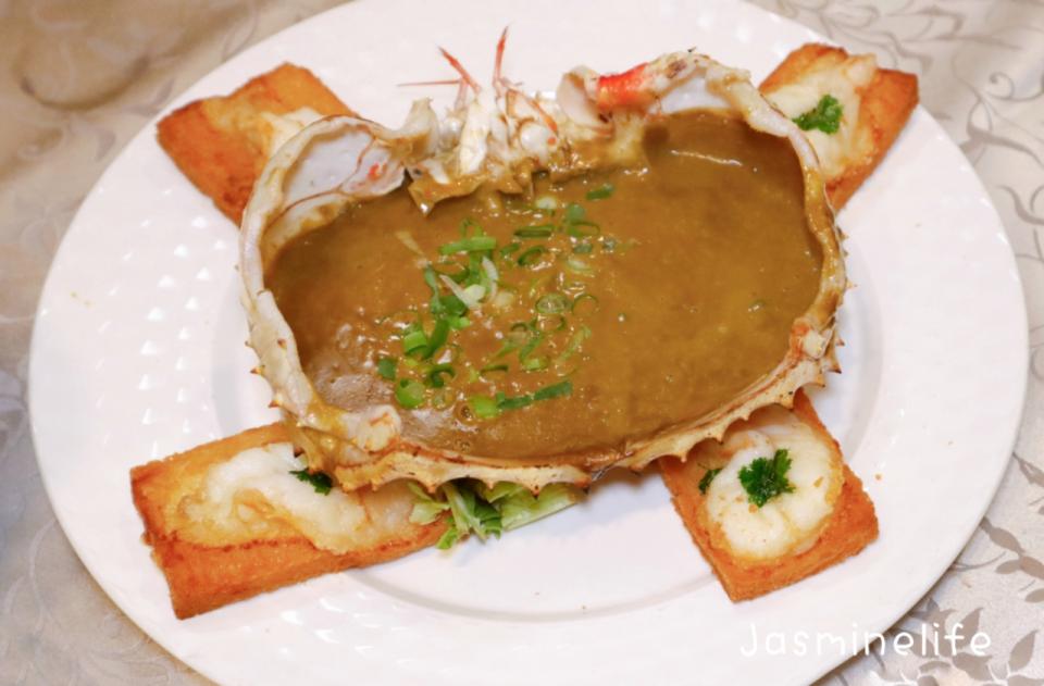 金黃色的醬汁 緊緊包裹著雪白肥美的蟹身